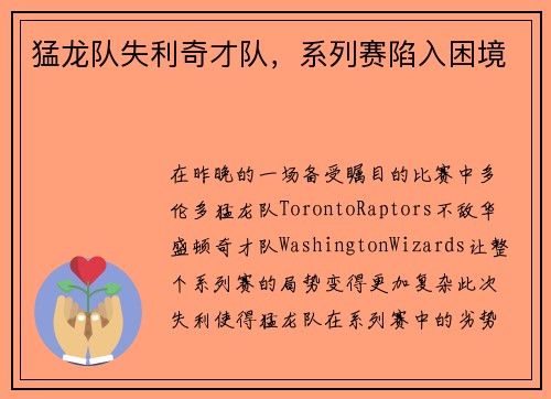 猛龙队失利奇才队,系列赛陷入困境