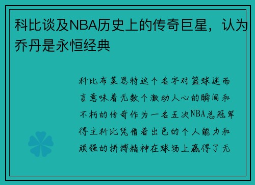 科比谈及NBA历史上的传奇巨星,认为乔丹是永恒经典